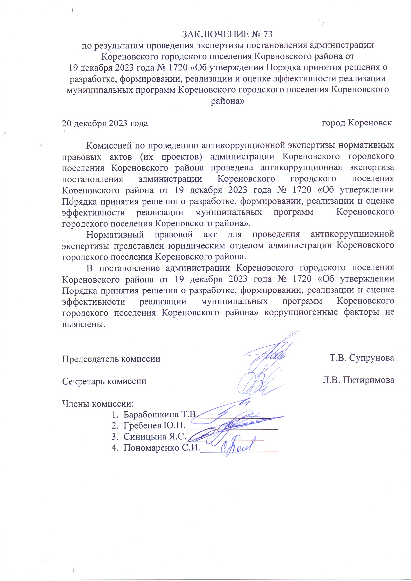 ЗаключениеОб утверждении Порядка принятия решения о разработке, формировании, реализации и оценке эффективности реализации муниципальных программ Кореновского городского поселения Кореновского района