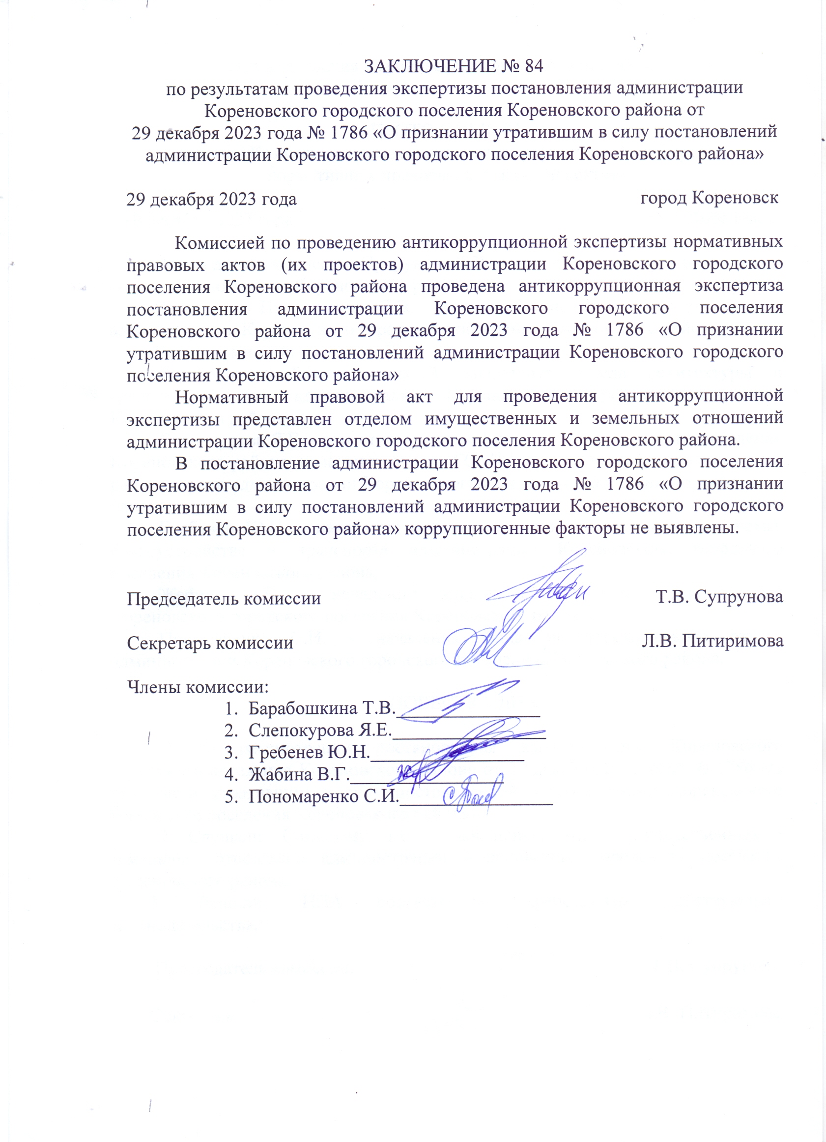 ЗаключениеО признании утратившими силу постановлений администрации Кореновского городского поселения Кореновского района
