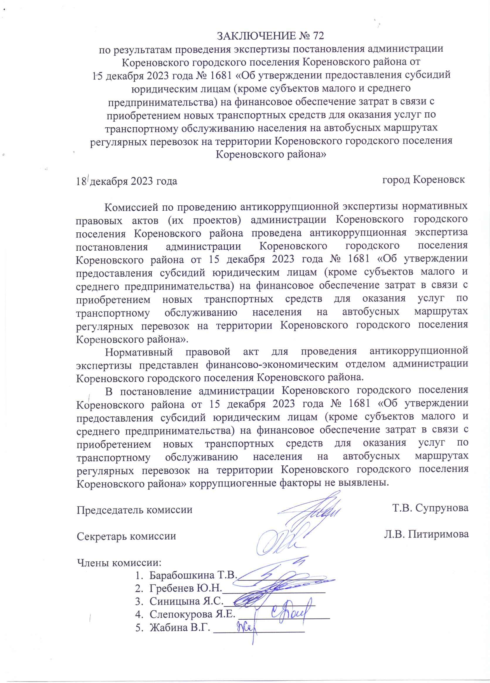 ЗаключениеОб утверждении порядка предоставления субсидий юридическим лицам (кроме субъектов малого и среднего предпринимательства) на финансовое обеспечение затрат в связи с приобретением новых транспортных средств для оказания услуг по транспортному обслуживанию населения на автобусных маршрутах регулярных перевозок на территории Кореновского городского поселения Кореновского района