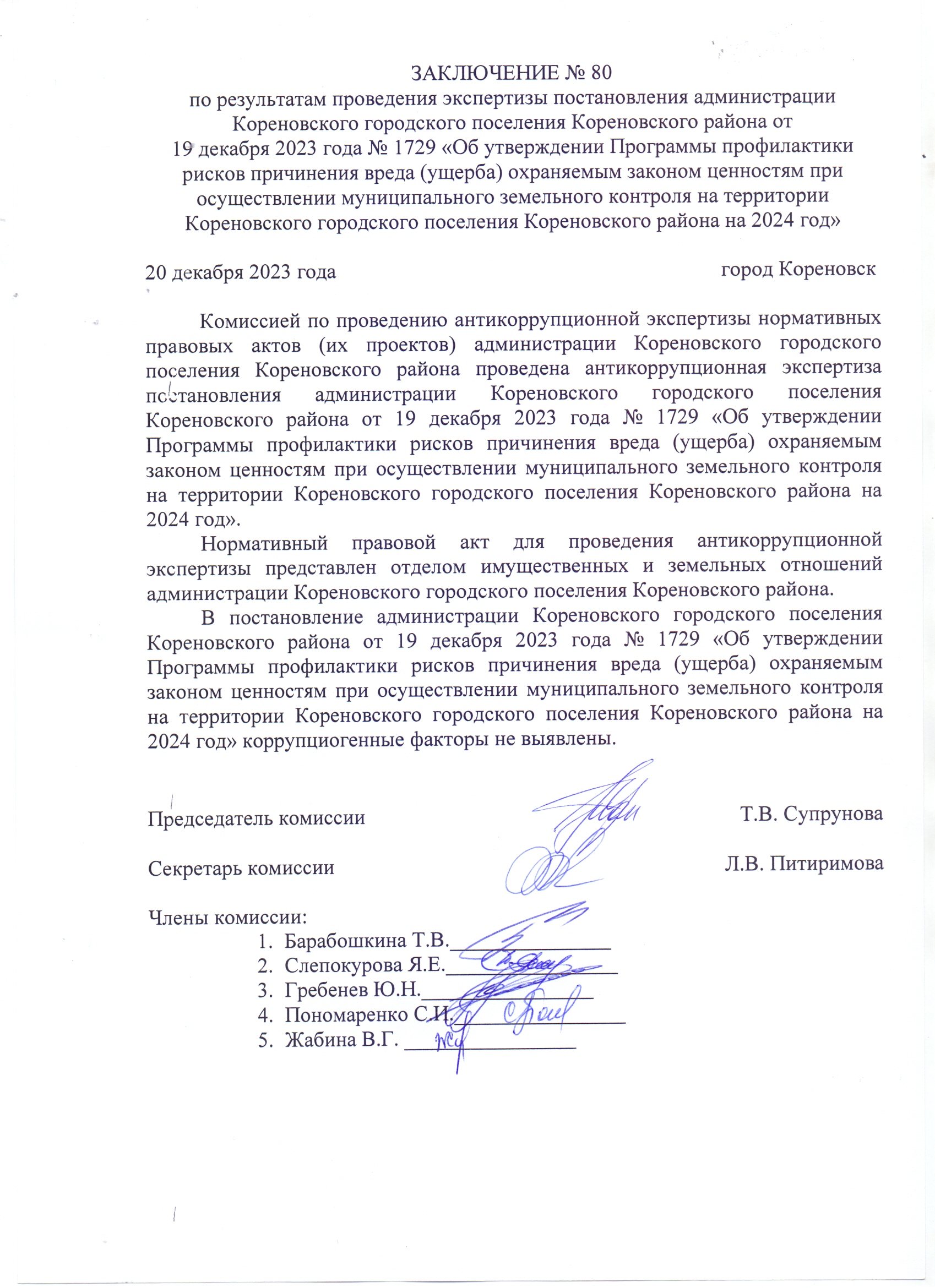 ЗаключениеОб утверждении Программы профилактики рисков причинения вреда (ущерба) охраняемым законом ценностям при осуществлении муниципального земельного контроля на территории Кореновского городского поселения Кореновского района на 2024 год