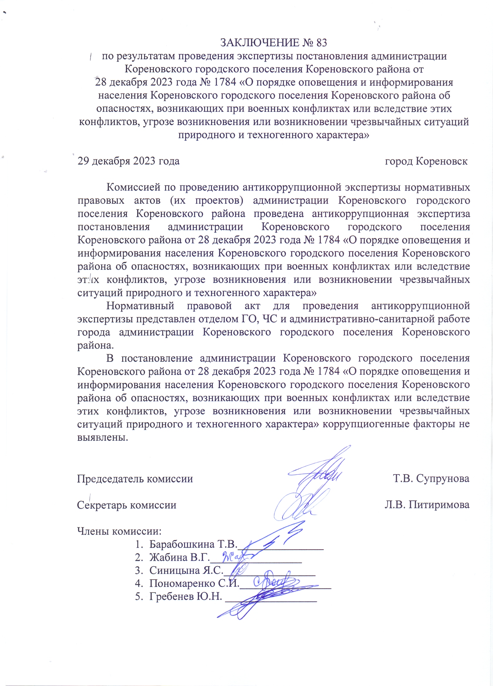 ЗаключениеО порядке оповещения и информирования населения Кореновского городского поселения Кореновского района об опасностях, возникающих при военных конфликтах или вследствие этих конфликтов, угрозе возникновения или возникновении чрезвычайных ситуаций природного и техногенного характера