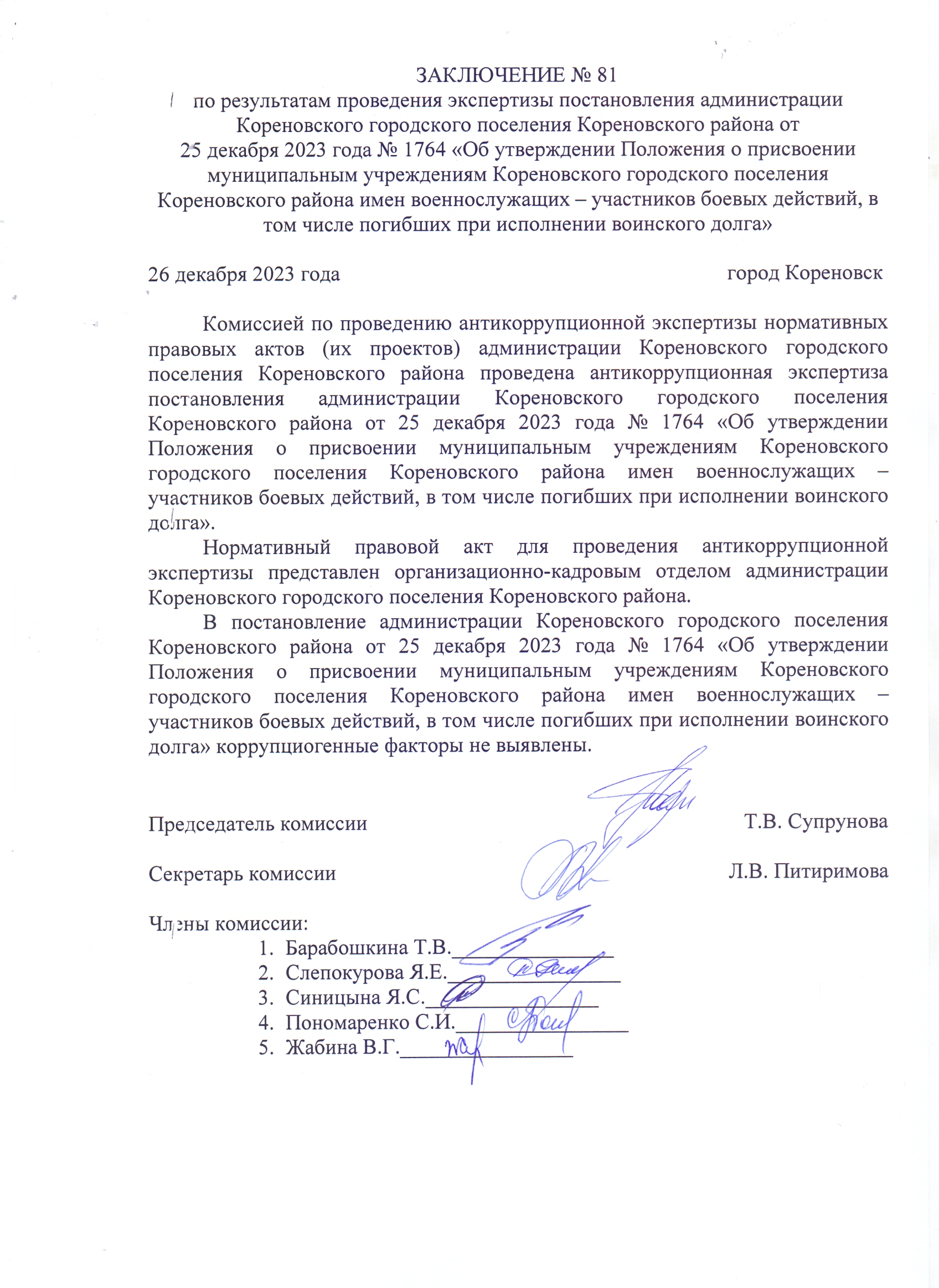 ЗаключениеОб утверждении Положения о присвоении муниципальным учреждениям Кореновского городского поселения