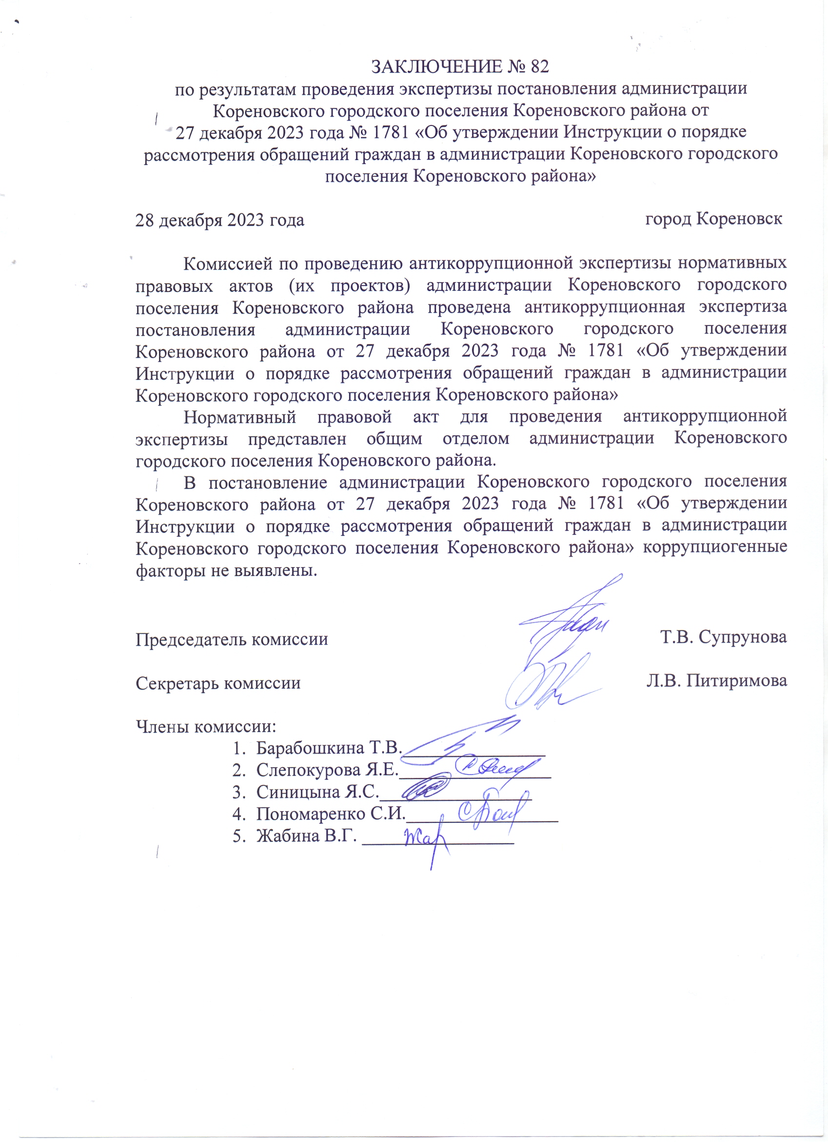 ЗаключениеОб утверждении Инструкции о порядке рассмотрения обращений граждан в администрации Кореновского городского поселения Кореновского района