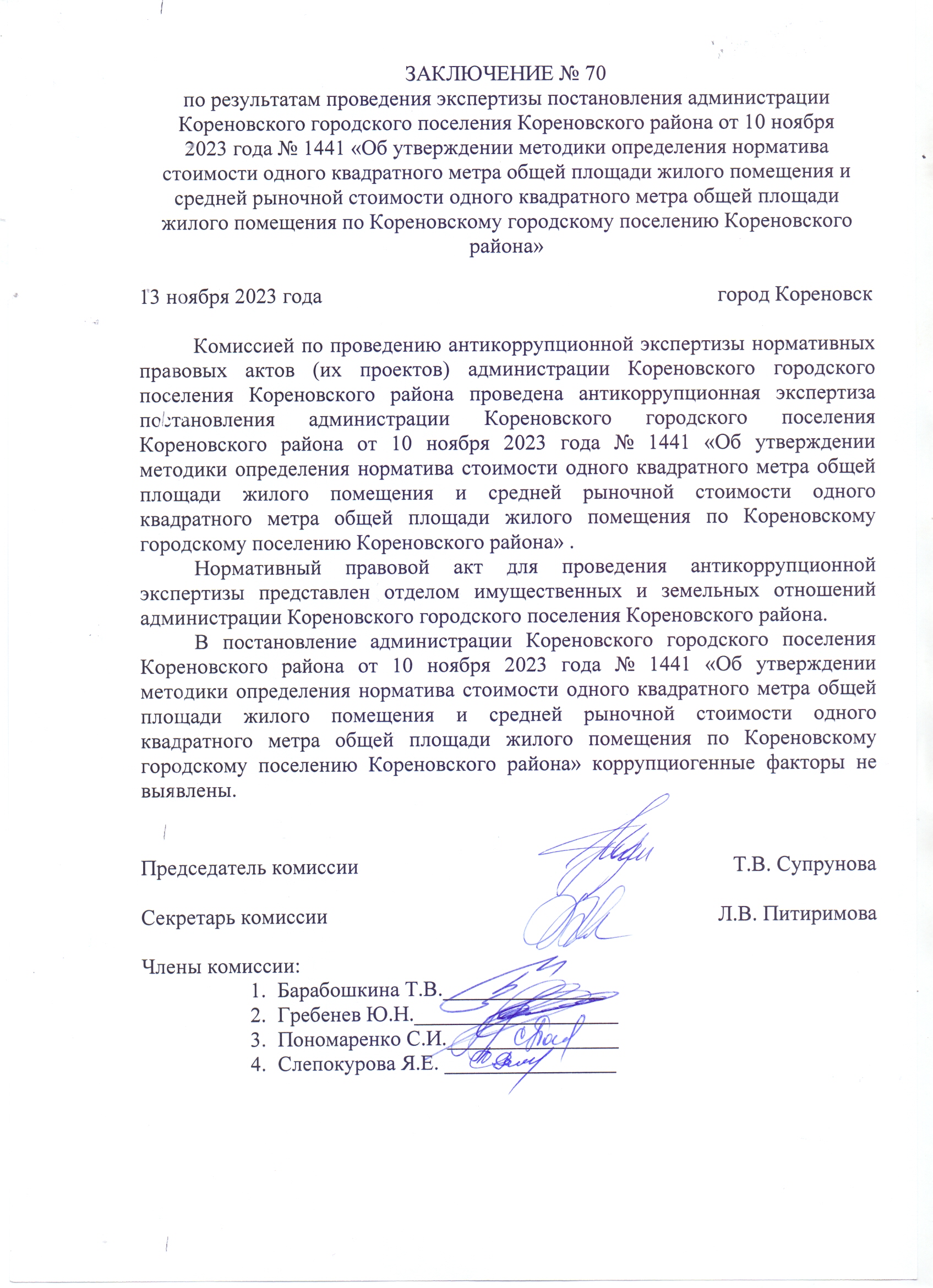 ЗаключениеОб утверждении методики определения норматива стоимости одного квадратного метра общей площади жилого помещения и средней рыночной стоимости одного квадратного метра общей площади жилого помещения по Кореновскому городскому поселению Кореновского района