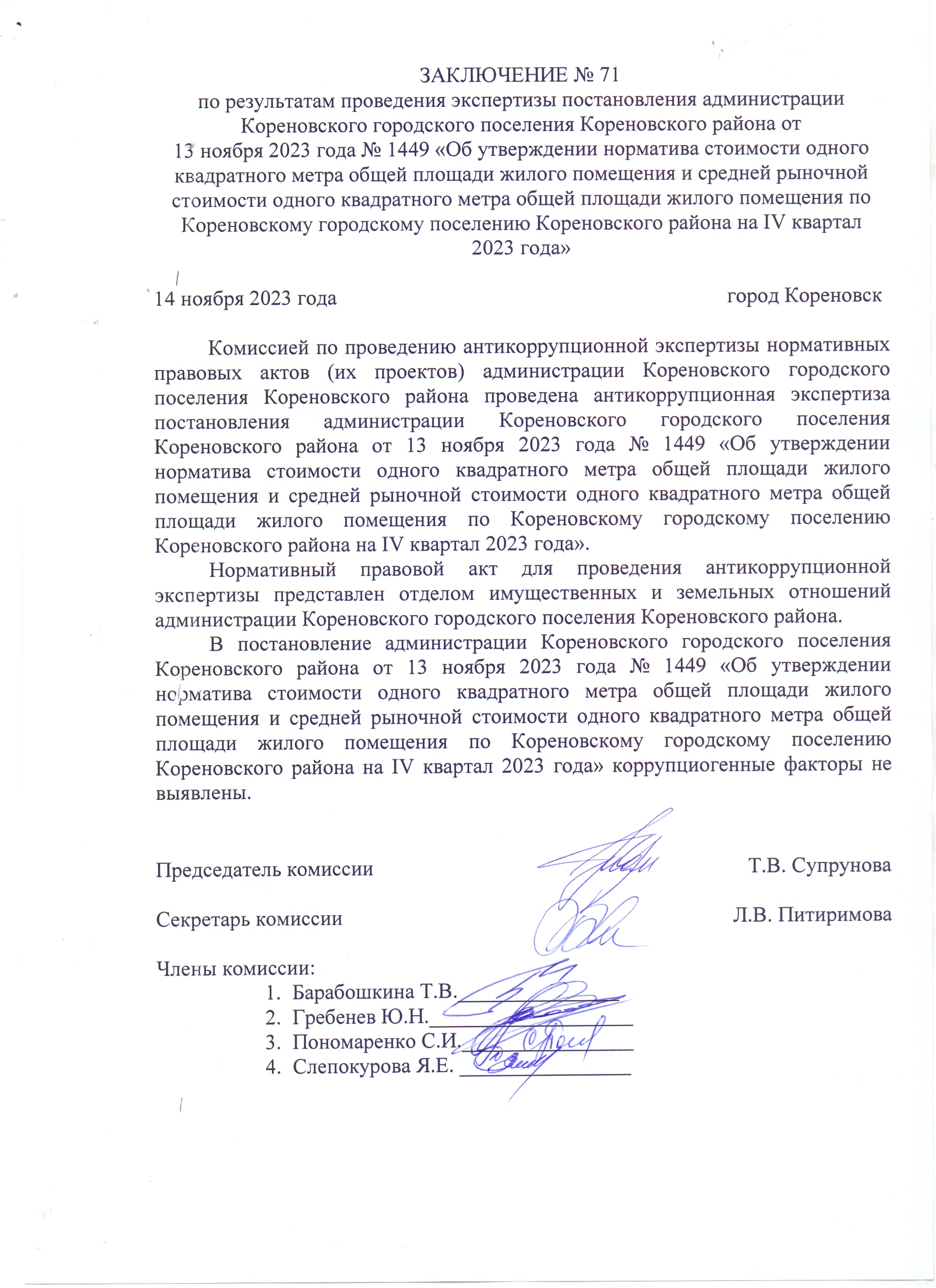 ЗаключениеОб утверждении норматива стоимости одного квадратного метра общей площади жилого помещения в средней рыночной стоимости одного квадратного метра общей площади жилого помещения по Кореновскому городскому поселению Кореновского района на IV квартал 2023 года
